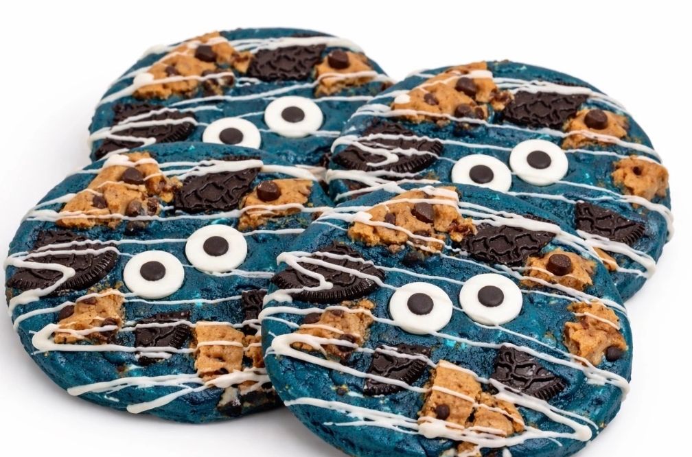 Fun, bold, and packed with flavor! This blue beauty is stuffed with chocolate chips, cookie chunks, and creamy drizzle. It’s thick, chewy, and loaded—just like Cookie Monster would want it. One bite and you’ll understand why it’s a fan favorite.